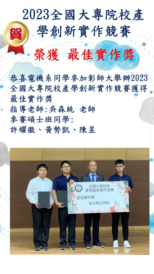 2023全國大專院校產學創新實作競賽-榮獲最佳實作獎